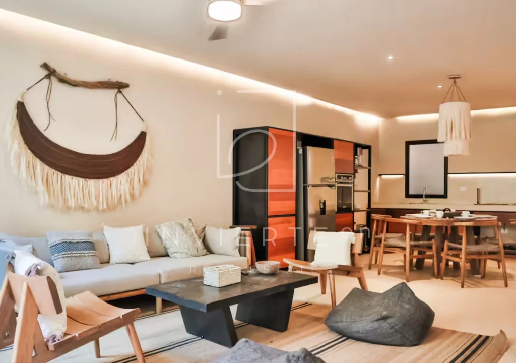 🌿 TU PRÓXIMO DEPA EN VENTA 📍 Condominio Sessile Labnah M3 💰 $5,900,000 MXN 188.9 m² | Planta Baja | Jardín Privado | 100% Amueblado Vive la experiencia Tulum desde tu propio jardín Hermoso departamento en planta baja con amplios espacios, diseño cálido y conexión directa con la naturaleza. Ideal para quienes buscan privacidad, comodidad y una propiedad lista para habitar o generar ingresos inmediatos. 🏡 Características 2 habitaciones 2 baños completos Cocina integrada Jacuzzi Jardín privado Amplia terraza 100% amueblado Entrega inmediata La distribución abierta integra sala, comedor y terraza, creando una transición perfecta entre interior y exterior, ideal para disfrutar del clima caribeño todo el año. 🌴 Lo que lo hace especial ✔ Departamento en planta baja ✔ Amplios espacios (188.9 m²) ✔ Diseño estilo boho–natural ✔ Perfecto para renta vacacional ✔ Listo para escriturar 🎯 Ideal para: Inversionistas que buscan propiedad lista para Airbnb Personas que desean vivir en Tulum con jardín privado Compradores que buscan entrega inmediata